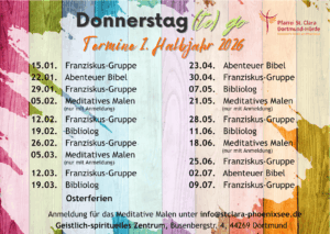 Termin: Donnerstag, 03.07. jeweils ab 19.30 Uhr in der Marienkapelle von St. Joseph, Busenbergstr. 4, 44269 Dortmund. Anmeldungen sind nicht erforderlich.