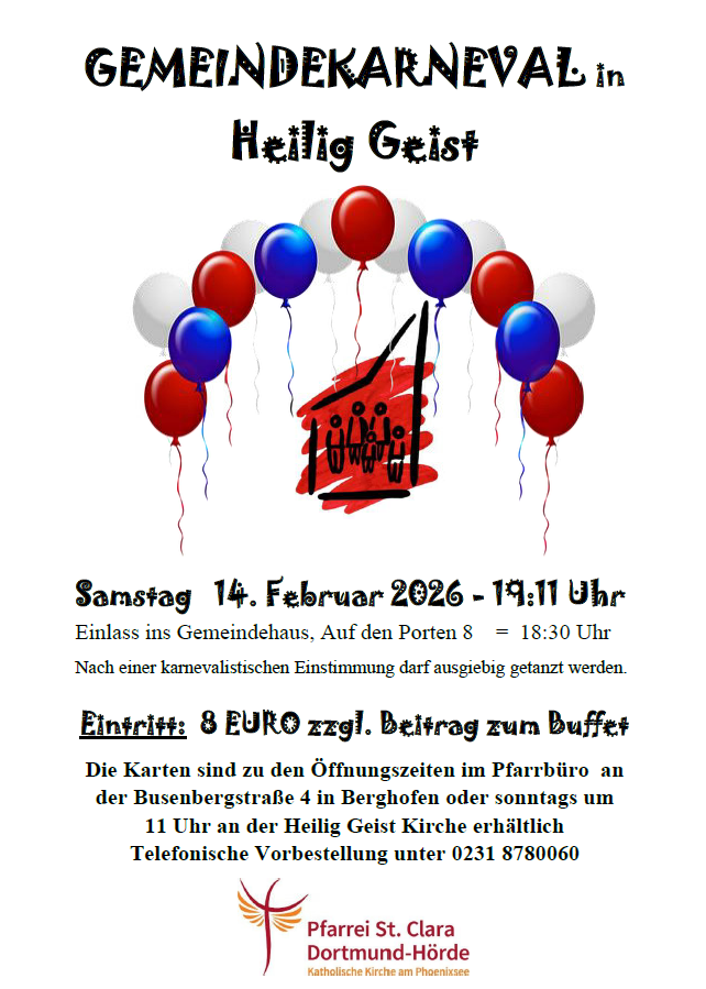 Herzliche Einladung zum Gemeindekarneval in Heilig Geist.